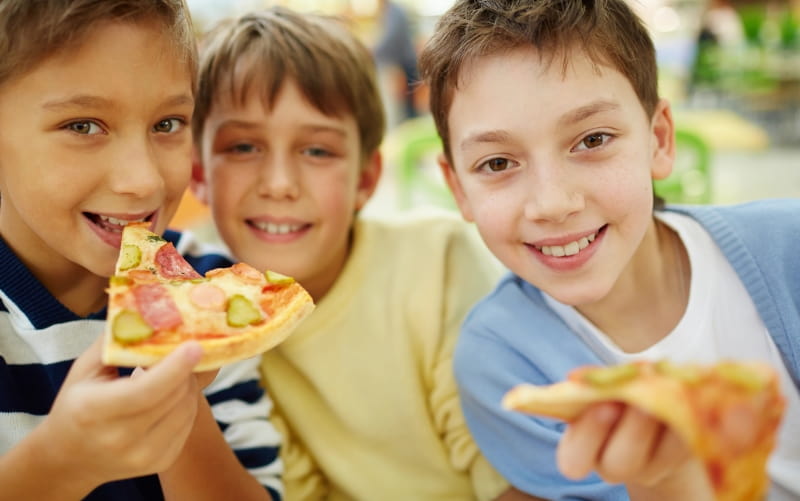Иногда можно позволить ребёнку пиццу из проверенной пиццерии, где блюдо готовят при вас из свежих ингредиентов. Дома же лучше приготовить лёгкий вариант: взять цельнозерновой хлеб, нанести томатный соус, добавить овощи и немного сыра.